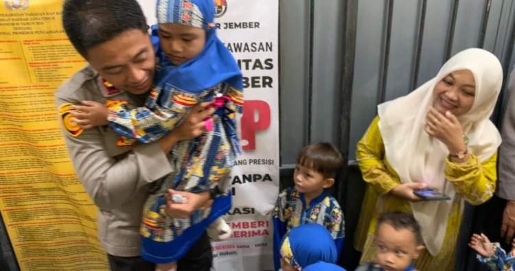 Di akhir kegiatan, sebagai bentuk perhatian dan kenang-kenangan, anggota Polres Jember membagikan bingkisan snack kepada masing-masing anak. Wajah-wajah bahagia pun terlihat saat mereka menerima hadiah kecil tersebut.